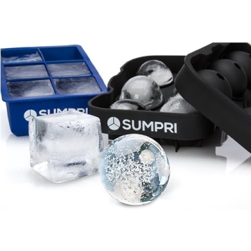 Show more Elevate your beverage experience with the SUMPRI Sphere Ice Mold & Big Ice Cube Trays, a remarkable innovation in the realm of perfect ice creations! Whether you’re crafting cocktails for a gathering, chilling your favorite whiskey, or just want to enjoy a refreshing drink, these molds are designed with both functionality and style in mind. Included in this set are a unique sphere mold and an oversized cube tray, perfect for creating flawless ice balls and generous 2-inch ice cubes. Made from durable, BPA-free silicone, this ice-making kit not only enhances your drinks but also stands the test of time, making it a must-have for any home bar.