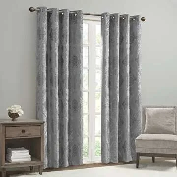 Sun Smart Amelia Jacquard Paisley Total Blackout Curtain for Bedroom, Luxury Single Window Panel Living Room Family-Room Kitchen, Grommet Top, 1-Panel Pack, 50"x84", Grey