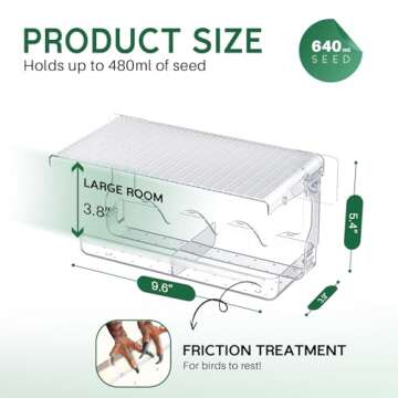 Show moreBring the beauty of nature right to your home with the SUNALLY Window Bird Feeder. Crafted from durable, clear plastic, this innovative bird feeder offers you an incredible view of feathered friends visiting your garden. Perfectly designed to mount on your window, it keeps you connected with the outdoor world while you relax indoors. The feeder’s clear structure gives you an unobstructed view for observing various birds, from vibrant hummingbirds to charming finches. Its thoughtful construction supports larger feeding trays that combine food and water trays in a compact design, making it both functional and beautiful to watch.