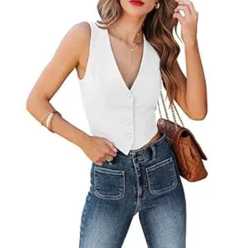 Sunborui Women's Business Button Up Sleeveless Vests Fully Lined V Neck Regular Fitted Jacket Waistcoat (White,Small,Small)