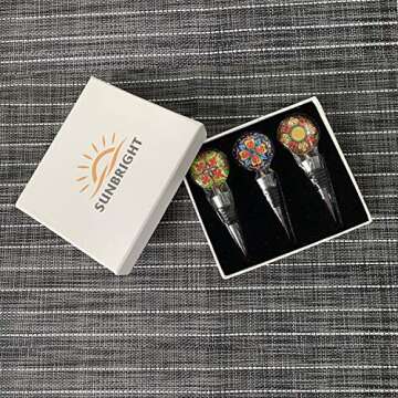 Sunbright Wine Bottle Stoppers Set - Elegant Glass Toppers, Perfect for Gifts