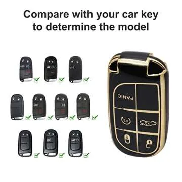 Show moreDiscover the perfect fusion of style and functionality with the SUNCARACCL Jeep Key Fob Cover. This exquisite key fob cover is tailored for proud vehicle owners who appreciate the blend of elegance and robust protection. Designed specifically for popular Jeep models, including the 2016-2018 Grand Cherokee, Wrangler, and Compass, this accessory enhances your car key experience while reflecting your personal style. The soft TPU material not only ensures durability but is complemented by a chic electroplating finish and stunning golden edges that add a touch of radiance to your everyday essentials.