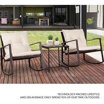 The set comprises comfortable rocking chairs that have been thoughtfully designed with thick cushioning to provide optimum comfort. Experience true relaxation as you gently rock yourself to peace. The attached bottom cushion with a zipper allows for easy washing, making maintenance a breeze. Whether sipping your morning coffee or winding down after a busy day, this set will quickly become your go-to outdoor furniture.