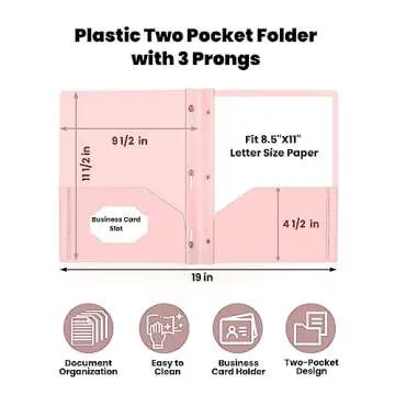Show moreIntroducing the SUNEE 3-Prong Plastic Folders with Pockets, a versatile and stylish solution for all your document organization needs! This vibrant 6-pack comes in delightful pastel colors that are sure to brighten your workspace or study area. Each folder is designed with two spacious pockets that perfectly fit standard letter size paper (8.5" x 11"), making them ideal for school handouts, important documents, office files, and much more.