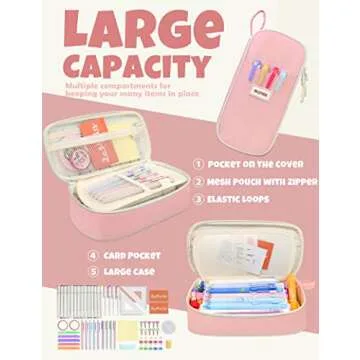 Show moreIntroducing the ultimate companion for all your stationery needs, the SUNEE Cute Pencil Case is the perfect blend of style and functionality. Designed for those who prioritize both aesthetics and utility, this pencil pouch showcases a charming kawaii aesthetic, ideal for both teen girls and adults wanting to express their vibrant personalities. With its eye-catching design, it is not only an accessory but also a statement piece for anyone's backpack.