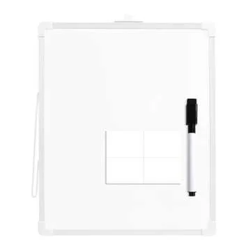 Show more Introducing the ultimate companion for your note-taking, planning, and creative needs – the versatile double-sided magnetic whiteboard. This 11x14 inch board comes complete with a fixed pen holder and an innovative hanging rope, making it easy to display anywhere you need it. The product includes a black marker pen with a built-in rubber cap, ensuring that you have everything you need to get started right away. For further convenience, we've added four double-sided tapes that allow you to fix the position of the board securely, so you can express your ideas with confidence.