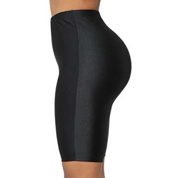 SUNFEXOY Biker Shorts for Women,High-Waisted Shiny Neon Bright Active Workout Yoga Pants Running Shorts Knee Length