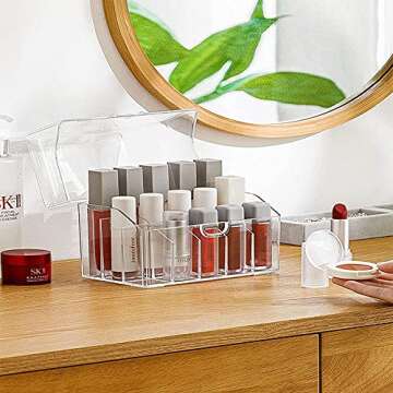 Elegant SUNFICON Lip Gloss Storage Organizer - Stylish Case with Lid