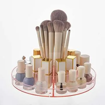 SUNFICON Rotating Makeup Holder Organizer Crystal Pink 360 Rotation Cosmetic Storage Holder Turntable Spin Display Stand Bathroom Bedroom Vanity Dressing Table Gift Girl Lady Women
