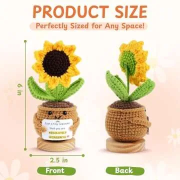 What sets our Sunflower Crochet Gift apart from others in the market is not just its exquisite handmade quality, but also its unique positioning as both a decorative item and an emotional support tool. Most crochet gifts lack the heartfelt quotes that resonate deeply with the receiver, which is why our sunflower brings a potent combination of aesthetic appeal and meaningful sentiment. Additionally, our commitment to craftsmanship, including attention to every detail from the crochet to the finishing touches, makes this gift stand out in any setting.