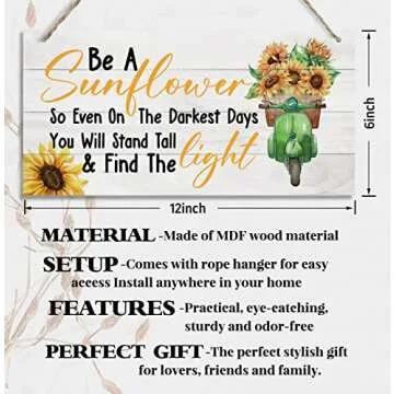 Sunflower Themed Wood Decor Sign, Be Like a Sunflower-Bright, Happy & Positive, Hanging Printed Wooden Plaque Decor, Motivational Gift for Home Office School Decor, Office Wall Décor 12x6 inch