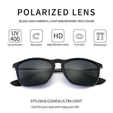 Show more Discover the ultimate blend of style and functionality with these exceptional sunglasses by SUNGAIT. Designed with a modern square lens and a less circular frame shape, these sunglasses are the perfect accessory to elevate any outfit. Crafted from high-quality materials, the frame not only looks chic but also ensures durability for everyday use. With 100% UV400 protection, they block out 100% of harmful UVA, UVB, and UVC rays, making them ideal for sunny days and outdoor adventures.