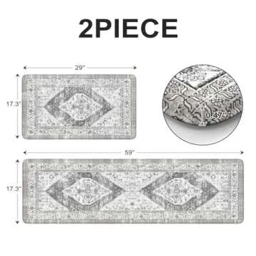 Sungea Anti Fatigue Kitchen Mats for Floor 2 PCS, Waterproof Memory Foam Kitchen Rugs and Mats,Non-Slip Standing Floor Mats for House,Sink,Office,Kitchen 17.3"x29" + 17.3"x59" (Grey)