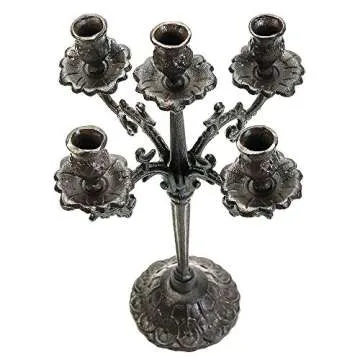 Sungmor Heavy Duty Cast Iron Candlestick Holders - Handcrafted Vintage Candelabra - 17Inch Tall & 5 Arms Candle Holders - Decorative Pillar Candle Stand for Christmas Birthday Wedding Home Party