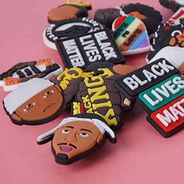 Show moreIntroducing the Sunisife TopLAD 25 Charms Black Lives Matter collection, perfect for those who want to express their commitment to social justice and equality through their fashion choices. This unique set is not only designed to fit clogs and sandals but also doubles as vibrant decorations for bracelets and wristbands. Made from high-quality materials, each charm features eye-catching designs that complement any outfit while conveying a powerful message. Elevate your style while making a statement with these incredible charms.