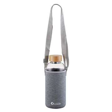 sunkey Sports Borosilicate Glass Water Bottle Wide Mouth 48 Oz Large Water Bottle with Bamboo Lid Neoprene Sleeve Bpa Free