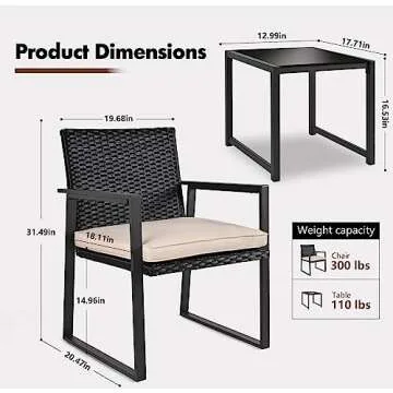One of the standout features is the ergonomically design of the chairs, which boast thick, plush cushions that ensure maximum comfort without sacrificing style. Sip on your favorite drink as you sit back and unwind on the well-crafted seating. The elegant glass table top offers a sleek, modern surface perfect for drinks or snacks, enhancing the overall aesthetic of your patio.