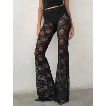 Show moreIf you’re looking to make a bold fashion statement while retaining comfort, look no further than the Sunloudy Women Lace Bell Pant. These stunning flare bottom leggings are meticulously crafted from premium quality polyester, ensuring they are breathable, skin-friendly, and exceptionally comfortable for all-day wear. With a captivating see-through lace design that beautifully accentuates your legs, these pants offer both style and versatility. The unique bell bottom silhouette adds a touch of sophistication, making them ideal for everything from streetwear to clubwear.