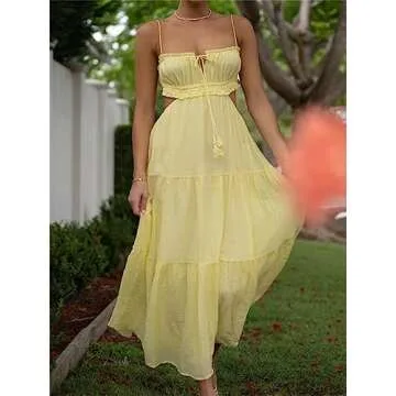 Show moreIntroducing the exquisite Sunloudy Women Spaghetti Strap Low Cut Dress, a flawless synthesis of style and comfort. Crafted from high-quality, breathable polyester, this dress promises an exceptional wearing experience that keeps you feeling cool and chic during summer outings. Its elegant spaghetti straps and backless design accentuate your silhouette while providing essential flexibility for movement, making it an ideal choice whether you’re at a casual summer gathering or enjoying a beach vacation. Perfectly versatile, this flowing maxi dress effortlessly transitions from day to night, ensuring you radiate effortless beauty wherever you go.