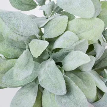 Sunm Boutique 3 Pcs Artificial Lamb's Ear Leaf Artificial Greenery Flocked Lambs Ear Leaves in Silver Green for Christmas Festival Wedding Garden Centerpieces Bouquet Floral Arrangement