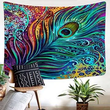 Sunm Boutique Colorful Peacock Feather Tapestry, Abstract Art Wall Tapestry Wall Hanging Psychedelic Tapestries for Wall Decoration (Peacock Feather, 51.2" x 59.1")
