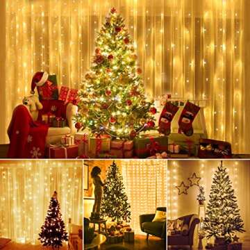 SUNNEST Window Curtain String Light 300 LEDs 9.8FT x 9.8FT 8 Lighting Modes Fairy Lights Remote Control USB Powered Waterproof Lights for Christmas Bedroom Party Garden Wall Decorations,(Warm White)