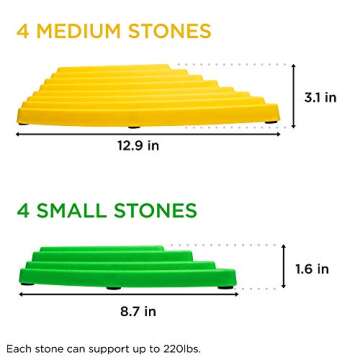 SUNNY & FUN Balance Stepping Stones Obstacle Course for Kids | Set of 8 River Stones in 2 Varying Sizes & Steepness | Fun Indoor & Outdoor Toy Helps Build Coordination & Strength (Junior Set)