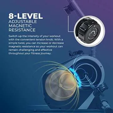 The bike features 8 levels of magnetic resistance, allowing users to easily adjust the intensity of their workout.