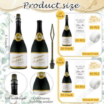 Introducing the Sunnychicc Mini Champagne Bubbles Wedding Favor, a delightful addition to any celebration designed to elevate your special occasions. This enchanting set features 20 charming mini champagne bottle bubbles, each meticulously crafted from durable plastic to mimic the classic allure of real champagne bottles. Not only do they look stunning, but they also contain approximately 0.74 ounces of bubble solution, ensuring hours of enjoyment and whimsical fun for guests of all ages....