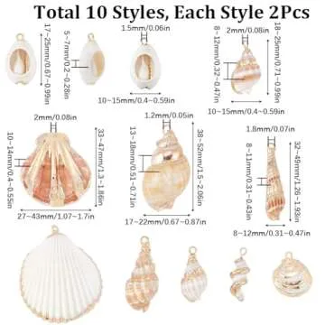 SUNNYCLUE 1 Box 20Pcs 10 Styles Sea Shell Charms Bulk Seashell Charms Natural Cowrie Conch Seashells Ocean Sea Shells Beach Charm for Jewelry Making Charms Women DIY Necklaces Earrings Bracelets