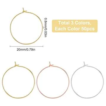 SUNNYCLUE 150PCS 3 Colors 20mm Brass Wine Glass Charms Round Beading Hoops Ring Earring Findings for DIY Earring Jewellery Making Party Favors Wedding Festivals Decoration