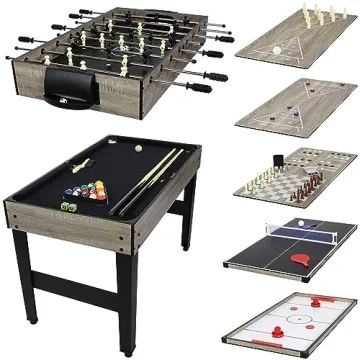 Sunnydaze 10-in-1 Game Table - Combination Multi-Game Table with Billiards, Push Hockey, Foosball, Ping Pong, Chess, Checkers, Backgammon, Bowling, Shuffleboard, Card Games - Classic Wood Stain