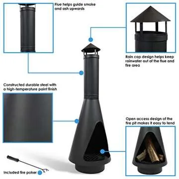 Sunnydaze 56-Inch Black Heavy-Duty Steel Chiminea with Log Poker, Grate and Rain Cap - High-Temperature Paint Finish