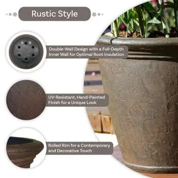 Sunnydaze Anjelica 24" Double-Walled Polyresin Outdoor Planter with UV-Resistant Rust Finish - Set of 2
