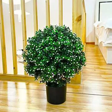 Sunnyglade 21.6” Tall Artificial Jasmine Topiary Ball Tree Set of 2 Pack Potted Bushes UV Resistant Potted Plants for Indoor Outdoor Home Garden (White)