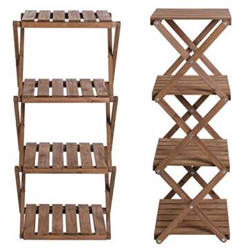Show more Discover the perfect blend of functionality and style with this versatile folding display shelf. Designed for both indoor and outdoor use, this shelf makes a striking addition to any space, whether it's for showcasing your beloved potted plants, organizing your favorite books, or displaying cherished photo frames. Its four-layer framework provides ample room, allowing you to arrange items beautifully without taking up excessive space. The foldable design not only makes it easy to store and transport but also ensures it can fit snugly into any corner when not in use.