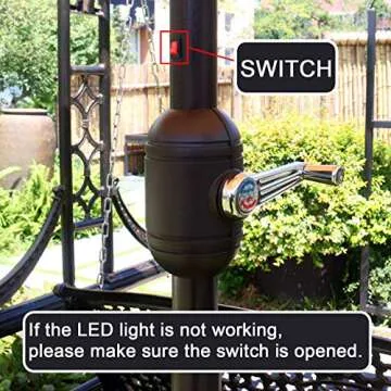 What truly sets this patio umbrella apart are the 24 built-in LED lights, providing a gentle glow that transforms your evenings into enchanting experiences. Imagine dining al fresco bathed in warm light or enjoying a vibrant evening with friends, with the umbrella's ambiance heightening the atmosphere. Its 9-foot diameter is perfectly sized to shade a 48-inch table, making it an ideal addition for dining sets or lounge areas.