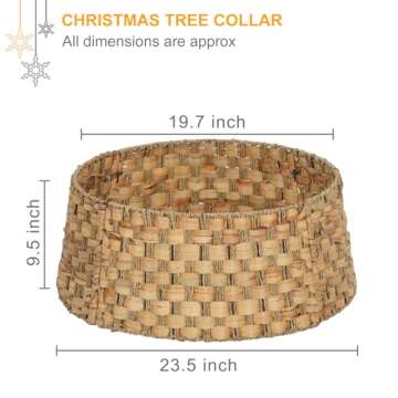 SUNNYPARK Christmas Tree Collar, 23.5’’ Hand-Woven Water Hyacinth and Grass Christmas Tree Collar Basket Base Cover