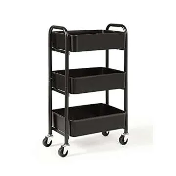 SunnyPoint 3-Tier Delicate Compact Rolling Metal Storage Organizer - Mobile Utility Cart Kitchen/Under Desk Cart with Caster Wheels (BLK, Compact (15.5" X 26.8" X 10.27"))