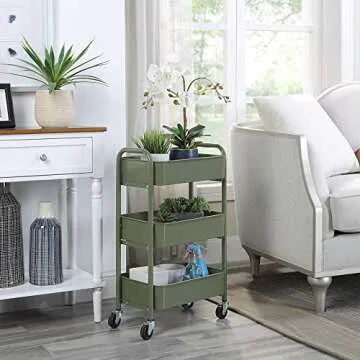 SunnyPoint 3-Tier Delicate Compact Rolling Metal Storage Organizer - Mobile Utility Cart Kitchen/Under Desk Cart with Caster Wheels (Army, Compact (15.5" X 26.8" X 10.27"))