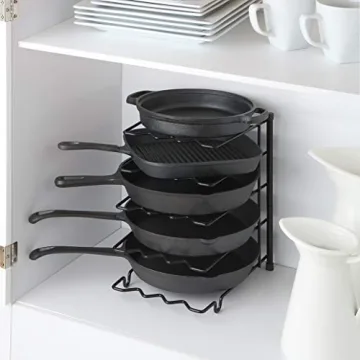 Constructed from top-quality metal, this heavy-duty organizer is built to last. Its sturdy construction not only provides peace of mind for heavy cookware but also allows for adjustable assembly—set it up vertically to hold up to five pans or horizontally for four. The intelligent design includes end caps to guard against scratches on countertops or cabinets, ensuring your kitchen looks pristine and remains damage-free. Users praise the aesthetic improvement, with many noting how it enhances the neatness of their cooking areas.