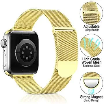Our newest design features an innovative **breathable weaving process**, ensuring your comfort throughout the day. This anti-slip, sweat-proof band prevents skin irritation, providing a pleasant wearing experience, whether you're at the gym or in a meeting. The magnetic connector offers easy adjustments to fit your wrist perfectly, enhancing its usability and style. With multiple color options available, including Starlight, Black, Silver, Rose Gold, and Champagne Gold, this band allows for personal expression and complements any outfit.