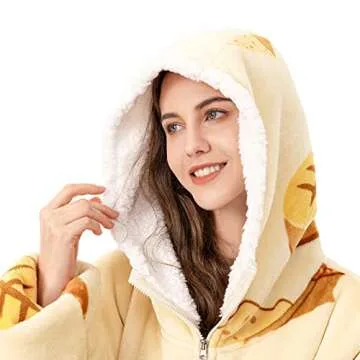 Show moreIntroducing the Sunolga Wearable Blanket Hoodie, a unique blend of comfort and functionality, meticulously designed to wrap you in warmth throughout the cold seasons. Made with an ultra-soft double-layer of cloud sherpa material, this oversized sweatshirt not only keeps you cozy but also comes with convenient features such as a hood pocket and sleeves. With generous dimensions of 94cm/37in in length and 98cm/38.5in in width, our blanket hoodie fits a truly diverse range of body types from kids to grandparents, ensuring a snug fit for everyone. No more worrying about size! Whether you are lounging at home, enjoying a sports event, or going on a camping trip, this versatile wearable blanket is your go-to companion for every occasion.