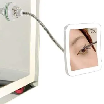 The flexible gooseneck is a standout feature of this mirror, measuring an impressive 9.8 inches in length, allowing you to position it just the way you like. Adjusting it is a breeze—focus on those tiny details like your brows or foundation without straining. Its portable design means you can enjoy all these features whether you're at home or on-the-go. The reliable suction cup attachment ensures it stays securely in place on any regular bathroom mirror, eliminating the need for wires or additional installation.