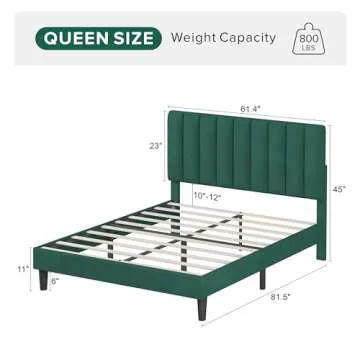 Sunrise Coast Queen Upholstered Bed Frame - Velvet, No Box Spring Needed, Dark Green