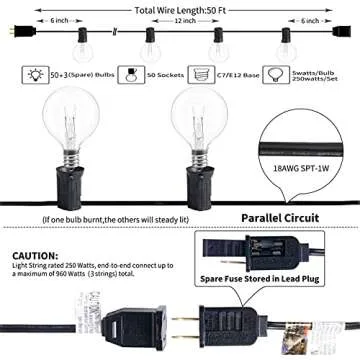 SUNSGNE 50ft Outdoor Globe String Lights G40 Patio String Lights with 53 Bulbs Connectable Commercial Hanging Lights for Christmas Patio House Backyard Balcony Party Wedding Decor, Black