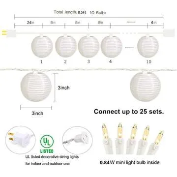 Boasting an IP44 waterproof grade, these decorative lanterns perform admirably in various weather conditions, making them ideal for garden parties, outdoor celebrations, or any decoration needs. Their hassle-free setup allows for two ways to connect: simply link the male plug to another or connect multiple strings end to end for larger gatherings.
