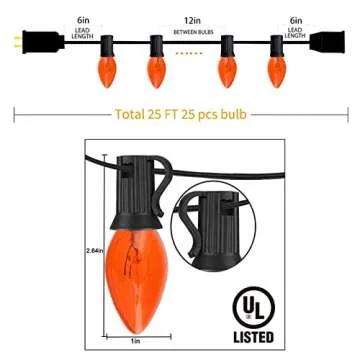 These vintage-inspired C7 lights are not only visually appealing but also practical, built with high-quality 20 AWG wire and a reliable 5 amp fuse, making them UL Listed for both indoor and outdoor use. No matter the weather, you can trust that these lights will shine brightly through your celebrations!