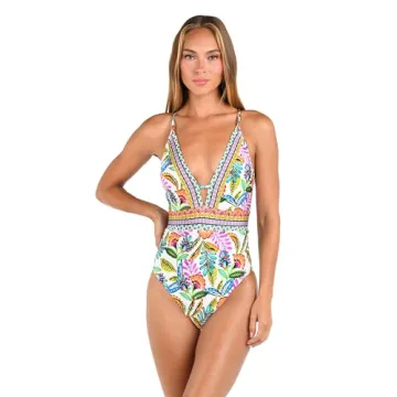 Sunshine 79 Women's Plunge Mio One Piece Swimsuit - Multi Jungle Jive Design