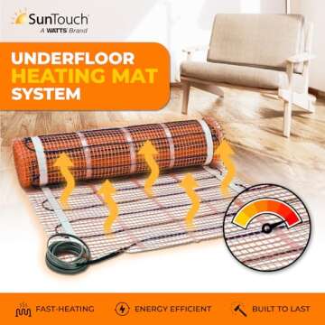 Transform any floor into a cozy sanctuary with the SunTouch TapeMat Electric Floor Heating Mat. Perfectly designed for efficiency and ease, this 10 square feet mat (2.0 feet x 5.0 feet) provides unparalleled warmth beneath tile, stone, wood, or laminate flooring in both homes and commercial buildings. Engineered with a 1/8 inch thick cable, it seamlessly integrates with 120 volt AC power, ensuring a safe and effective heating experience. Installation is a breeze; whether you’re a DIY enthusiast...